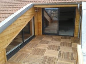 Une rambarde ou un mur de sécurité viendront aussi prévenir tout risque de chute. L’installation d’une porte de terrasse – baie vitrée ou porte-fenêtre sera également nécessaire.