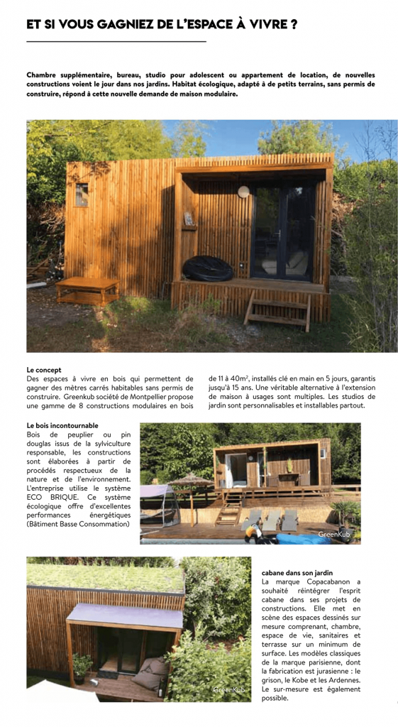 Tendance : Inspiration magazine vous donne les meilleures idées décos et lifestyle du moment. Dans son numéro 7, le magazine déco vous présente le concept des studios de jardin Greenkub et ses nombreux atouts :