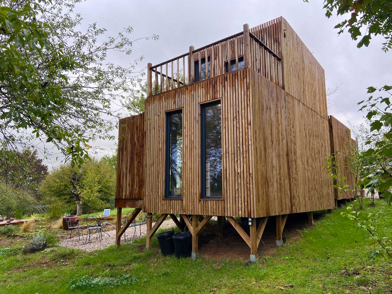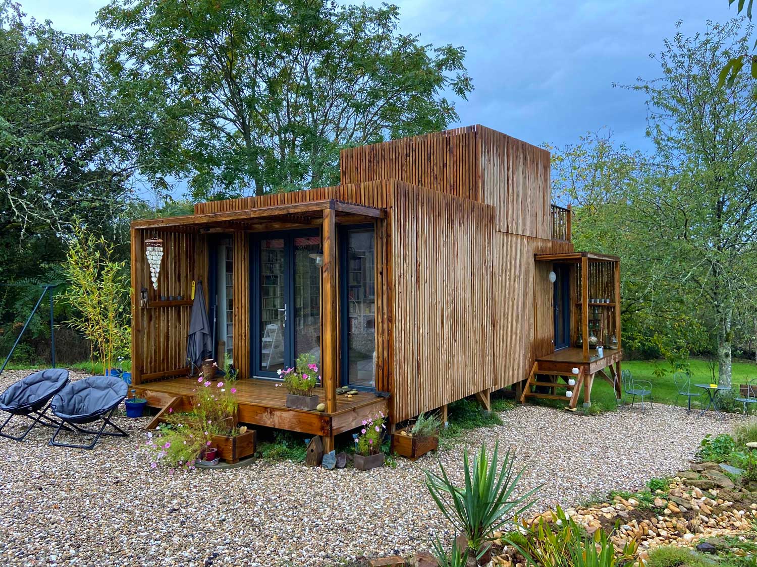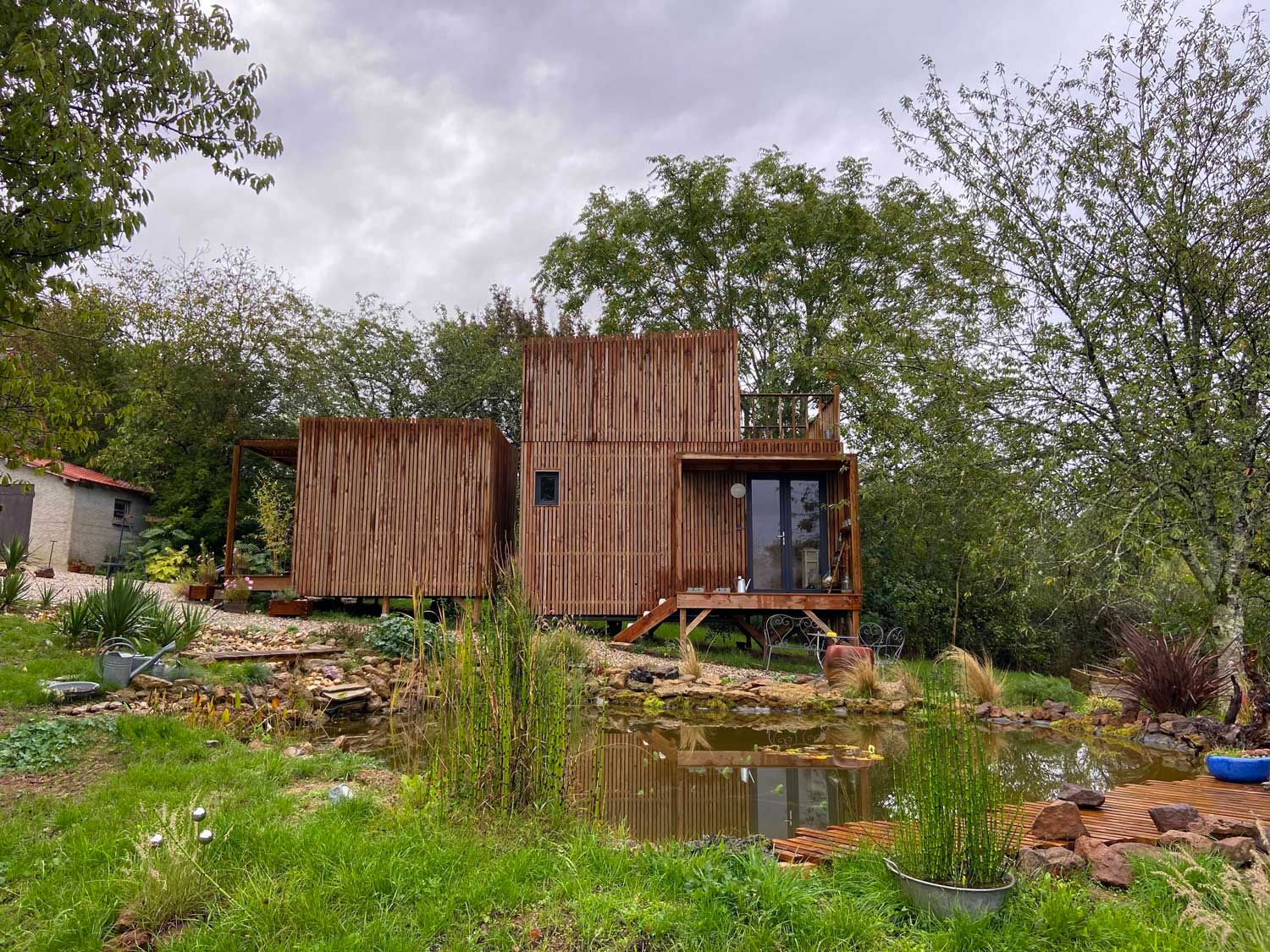 Dans l’Indre, au cœur d’un terrain paisible agrémenté d’un bassin naturel, Vincent a décidé de rentabiliser son espace extérieur inoccupé en y installant un espace à vivre à l’année qu’il utilisera en chambre d’hôte.