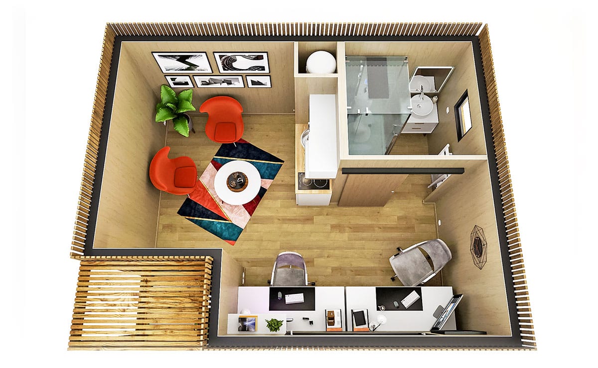 - Installation en 5 jours pour les studios de jardin de plain-pied et 10 pour les studios en duplex